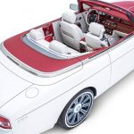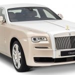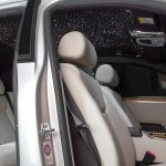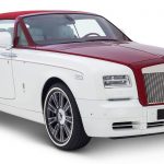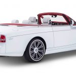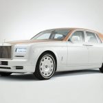 On débute avec l’une des toutes dernières Phantom berline avec la Sheikh Zayed Grand Mosque qui adopte les couleurs propres à l’endroit avec le blanc pur et le doré. Si l’extérieur se montre assez conventionnel, le spectacle se trouve à l’intérieur avec une finition d’exception. Au plafond et aux portières, on retrouve des broderies imitant les fleurs et les décorations que l’on voit dans la Mosque. Ce travail de Titan nécessita 800 heures de travail et 400 000 surpiqures.