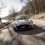 Aujourd’hui, nous avons la chance d’admirer la version « Volante » de cette DBS Superleggera, c’est-à-dire la déclinaison décapotable. Et elle n’est rien de moins que sublime. Les seuls changements par rapport au coupé se trouvent au niveau du toit, qui est souple, et au niveau de l’aérodynamisme, où l’on a modifié les divers ailerons pour compenser ce nouveau toit. On assure tout de même un appui aérodynamique de 390 livres, ce qui représente seulement 6,6 livres de moins que sur le coupé. Toute la mécanique et les éléments dans l’habitacle demeurent.