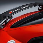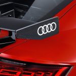 Esthétiquement, on obtient la « totale » avec des ajouts aérodynamiques remarquables. Dans le lot, des ailettes au parechoc avant, un imposant aileron arrière en fibre de carbone, un ouïe de capot et plusieurs autres composantes en plastique renforcé (CFRP). La multiplication d’éléments à la carrosserie permet à la R8 une majoration de la pression négative à 551 livres lorsque l’on roule à 330 km/h.