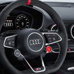 Pour les TT-S et TT-RS, on va plus loin avec un ensemble de refroidissement extérieur en plus de freins à rivets multiples pour une plus grande endurance. Pour un look plus affirmé, on ajoute la possibilité de jantes de 20 pouces de type rallye peintes en noir qui réduiront le poids de 16 livres pour les TT et 18 pour la R8. Pur soutenir les bolides, de nouvelles suspensions plus fermes avec une barre stabilisatrice plus généreuse s’invitent. Pour le spectacle et la puissance, un système d’échappement en titane sera livrable sur les TT-S et TT-RS.