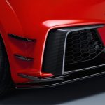 Dans la cabine, on suit cet esprit. On change le volant pour un fond plat plus sportif. On ajoute des accents de cuir rouge et une mer d’alcantara. Dans une optique de réduire le poids, il sera possible de sacrifier les sièges arrière au profit d’une barre de torsion artistiquement agréable à l’œil en plus d’être pleinement fonctionnelle pour la stabilité en virage. On parle ici d’une économie de 44 livres.