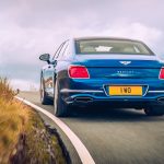 Physiquement, des emblèmes First Edition remplacent les emblèmes d’origine, tandis que des écussons de l’Union Jack (drapeau britannique) estampés du numéro « 1 » au centre sont apposés sur les piliers C . Des jantes de 22 pouces dessinées par Mulliner chaussent cette grosse berline cossue, tandis que la fameuse figurine Flying B de Bentley trône à l’avant, ailes illuminées, et prête à se terrer dans la grosse grille de calandre lorsque le conducteur verrouille les portières.