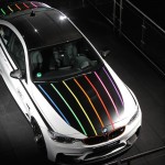 On présente donc une production limitée à 23 exemplaires, le numéro du coureur automobile, arborant les thèmes du triomphant bolide. On parle maintenant de la M4 DTM Champion Edition. Construit dans les ateliers de personnalisation de Garching, nous verrons les coupés exclusivement en blanc alpin avec les accents de couleurs comme le capot et le coffre en noir en plus des bandes contrastantes qui longent le bonnet. Le toit reprend le concept de la fibre de carbone. On note aussi le lettrage aux vitres latérales qui indiquent clairement de quelle édition l’on est témoin. La dernière touche à la carrosserie est les narines peintes orangées comme sur la voiture de course. Finalement, on pose des jantes noires de 19 pouces en alliage léger.