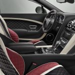 Dans la cabine, on repousse le dynamisme. Premièrement, on retire les boiseries habituelles pour des appliques faites à la main en damier. Trois couleurs de cuirs de mélangent tout en reprenant les surpiqures diamantées propres à Bentley. On remarque aussi que le volant et le levier de vitesse reçoivent une configuration unique en plus d’intégrer de l’alcantara.