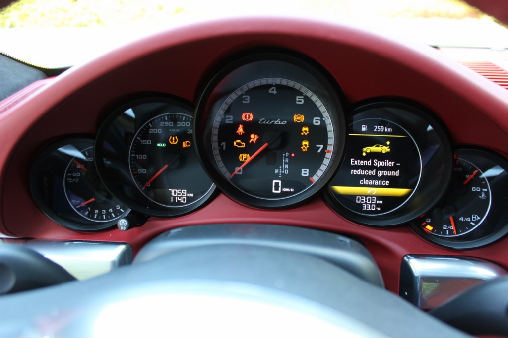 Those flared wheel arches (especially at the back thanks to the 1,575 mm rear track width), rear cooling ducts, low-profile taillamps and classic “Porsche” font across the rear deck make for a car that’s easy on the eyes. It’s big, it’s wide and it does very little to hide that fact. Don’t get me started on the bright Carrera Red interior (a $1,730 option), which impressed everyone who sat inside. It’s so bright, you could probably see it from space if you left the doors open…