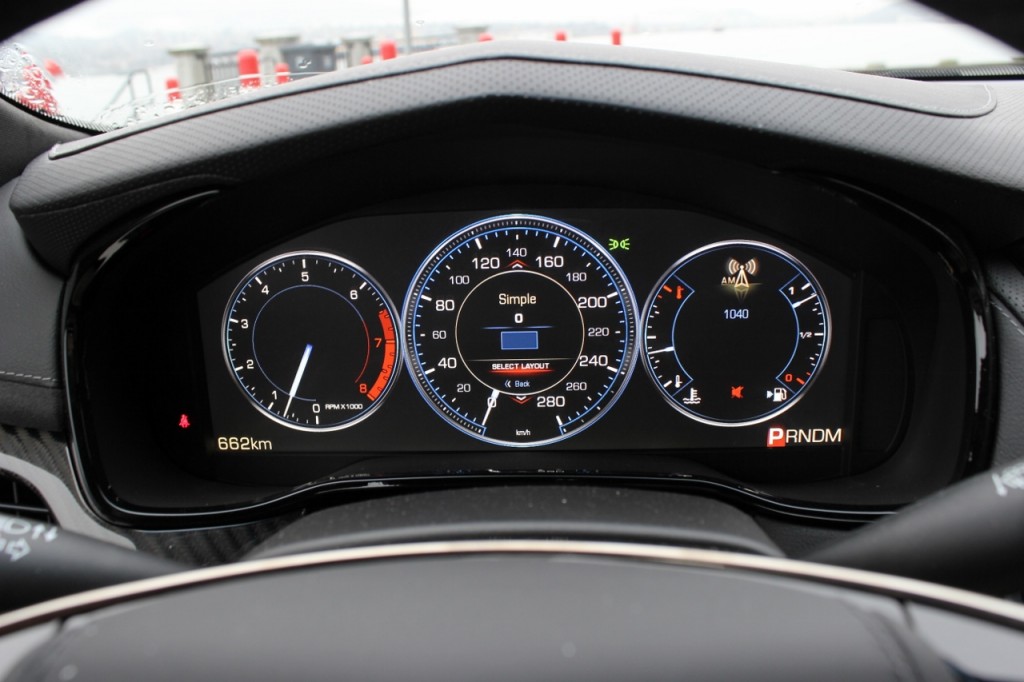 I do, however, like the optional digital gauge cluster that can be configured different ways, highlighting certain fields of information depending on which mode; “Simple”, for example, gives you a digital readout as a speedometer, right there in the middle of the cluster. “Performance” gives you a speedometer and tachometer, and so on.