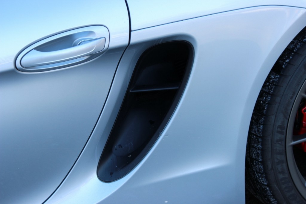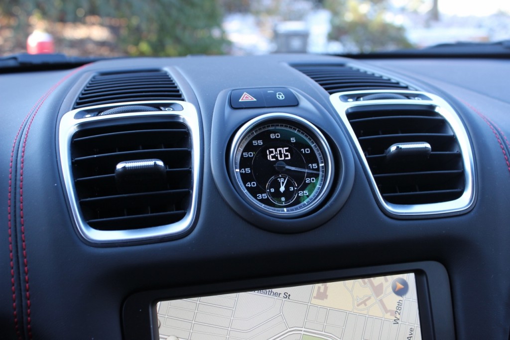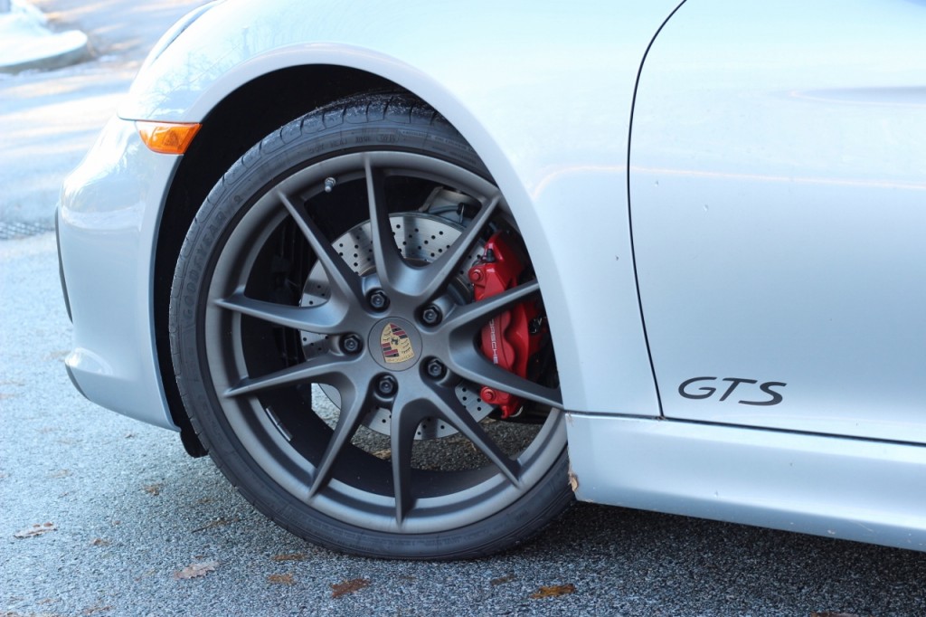 Special GTS styling cues include special wheels (ours were platinum-painted, a $1,010 option), black outlines ‘round the headlamps (a classic Porsche touch) and lower ride height. That last feature is part of the standard three-mode Porsche Active Suspension Management system, a $2,050 premium on the Cayman S. It’s standard here, though, providing the GTS with a mean stance that helps the proportions as a whole.