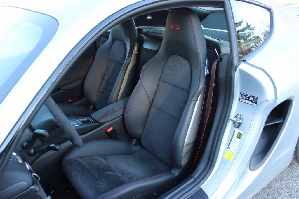 Once you’re sat inside, acres of Alcantara suede greet you—it’s on the shifter, the steering wheel, the seats, the a-pillars the headliner—and other GTS-special additions like the red instrument cluster and red-stitched seatbelts do their part to remind you just how special this Cayman is.