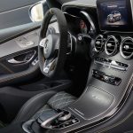 Dans la cabine, on reconnaît l’esprit propre à tous les produits de haute performance AMG. On obtient notamment une nouvelle instrumentation, des sièges sport, des appliques de fibre de carbone et du DYNAMICA, une sorte de micro fibre s’apparentant à l’alcantara. Des surpiqures complètent le tout avec leurs couleurs vives et contrastantes.