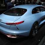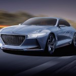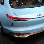 Offrant un design inspiré par le Concept Hyundai Vision G du dernier concours d’élégance de Pebble Beach, on adopte cette fois-ci une configuration à la mode des coupés à quatre portes. La ligne de toit est particulièrement basse ce qui dynamise l’ensemble. On intègre également des accents décoratifs aux ailes avant qui se veulent uniques au concept. Fait à noter, les éléments éclairants sont minces et suggèrent un regard perçant.