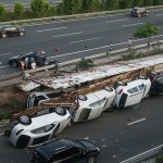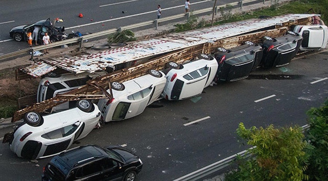 C’est bien connu que la Chine n’est pas un exemple de sécurité routière. Ce matin, nous en avons encore une fois la preuve avec le renversement d’une remorque chargée de Porsche Macan et autre produit de luxe.