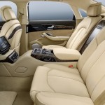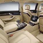 D’une longueur de 6,36 mètres, presque 21 pieds, la berline reçoit un empattement généreux de 4,22 mètres. L’ensemble de la partie ajoutée se concentre à l’intégration des deux portières additionnelles. Tout comme le reste de l’A8L, ces nouvelles composantes sont fabriquées essentiellement en aluminium. Pour assurer une rigidité structurelle, les ingénieurs ont travaillé sur ce projet durant plus d’un an. On ajoute une collection de renforts et de tubulures. Cette nécessité est d’autant plus importante que la limousine obtient un toit vitré de 2,4 mètres de long.