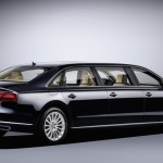 Audi se lance dans la course des limousines d’états au même titre que Mercedes-Benz avec la Classe S Pullman. Audi avec cette A8L Extended adopte toutefois une approche différente en intégrant deux portes de plus à l’empattement allongé.