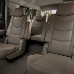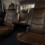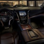 À l’intérieur, les différences entre l’Escalade et ses confrères chez Chevrolet et GMC sont plus marquantes. L’habitacle semble également beaucoup plus luxueux que ce que l’on retrouvait dans l’ancienne génération du gros VUS Cadillac. L’Escalade 2015 sera offert en version 6 ou 7 passagers tandis qu’une version à empattement allongé sera encore une fois offerte afin d’offrir encore plus d’espace aux passagers des deux dernières rangées.