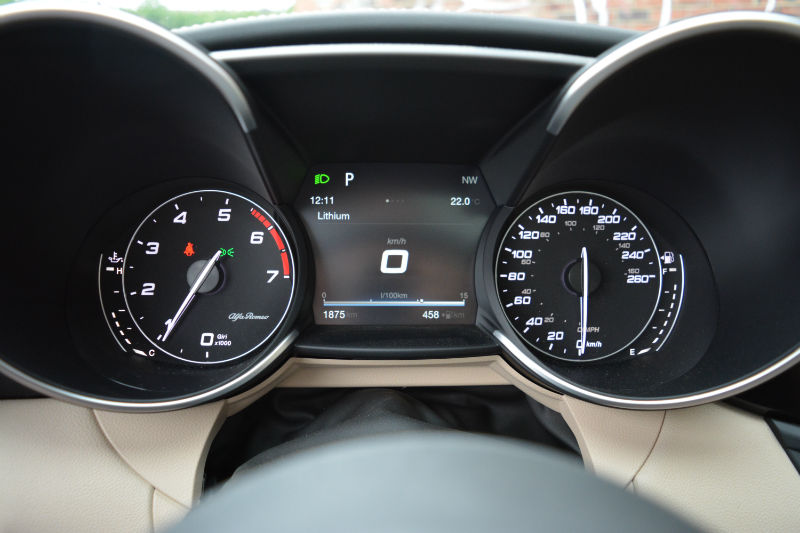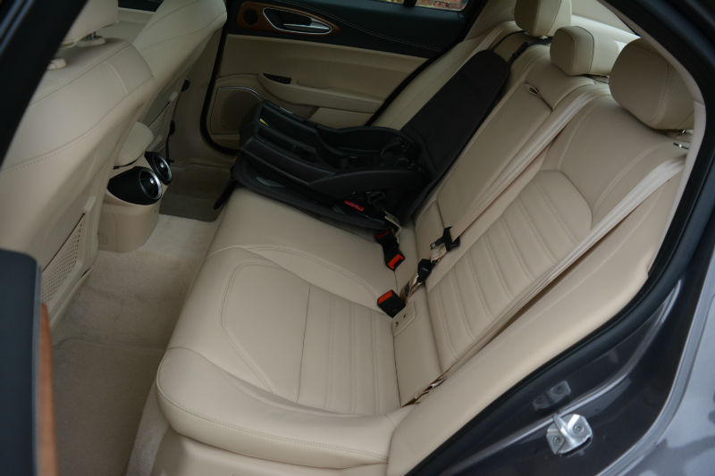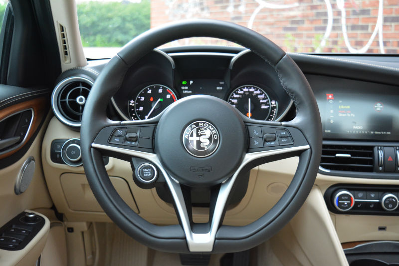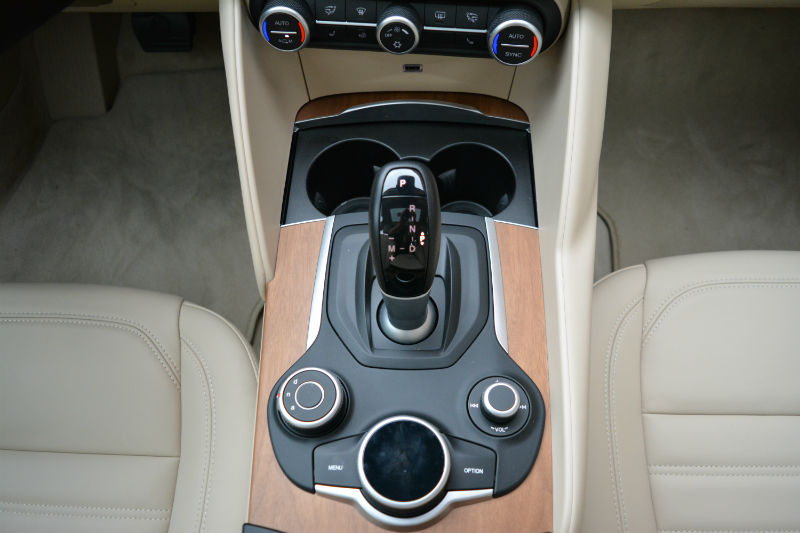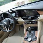 The cabin is incredibly chic. The materials selected and the way they come together gives me the impression that a fashion designer had something to do with it. Am I projecting? I love the scarcity and clutter-free dashboard layout. The Alfa rotary pad sits in the middle of the center tunnel and, once more, top marks for the clean look however Alfa Romeo decided to go with its own connectivity menus and HMI. Sadly, the menus are far more complicated than necessary – a tweaked version of FCA’s excellent uConnect would have done nicely.