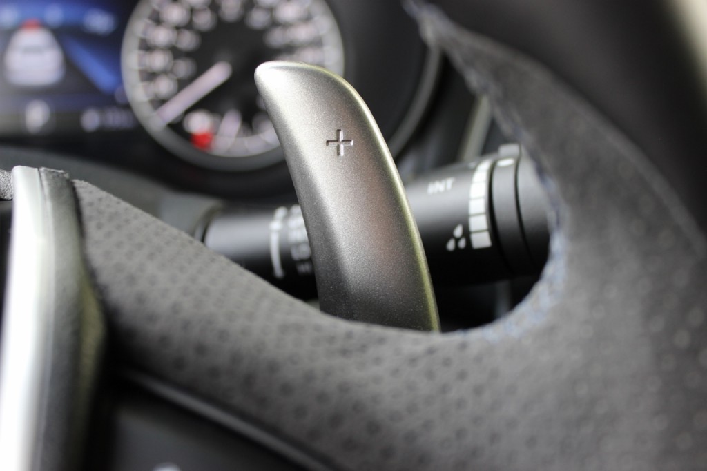 Of course, if you like the sensation of rowing the cogs yourself, well, you can almost get it—in the SR only, mind you–by bumping the shift lever left. That activates the wheel-mounted paddles, which can then be used to swap between pre-set “ratios”. It actually feels like you’re shifting gears, too, which is a nice feature to have.