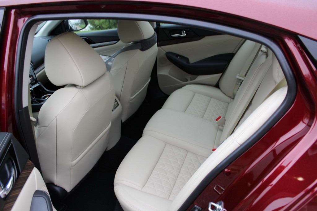 For me, the real highlights are the gaping front grille, 370Z-esque headlight lenses and the way the rear door kicks up toward the high beltline. The Maxima also gets the “floating roof” look that debuted on the 2015 Murano crossover, achieved by blacking-out the C-pillars. It is quite a bit to take, though, and I imagine the more conservative buyers—and believe you me, there are many, many conservative mid-size sedan buyers—would get a little scared off by it.