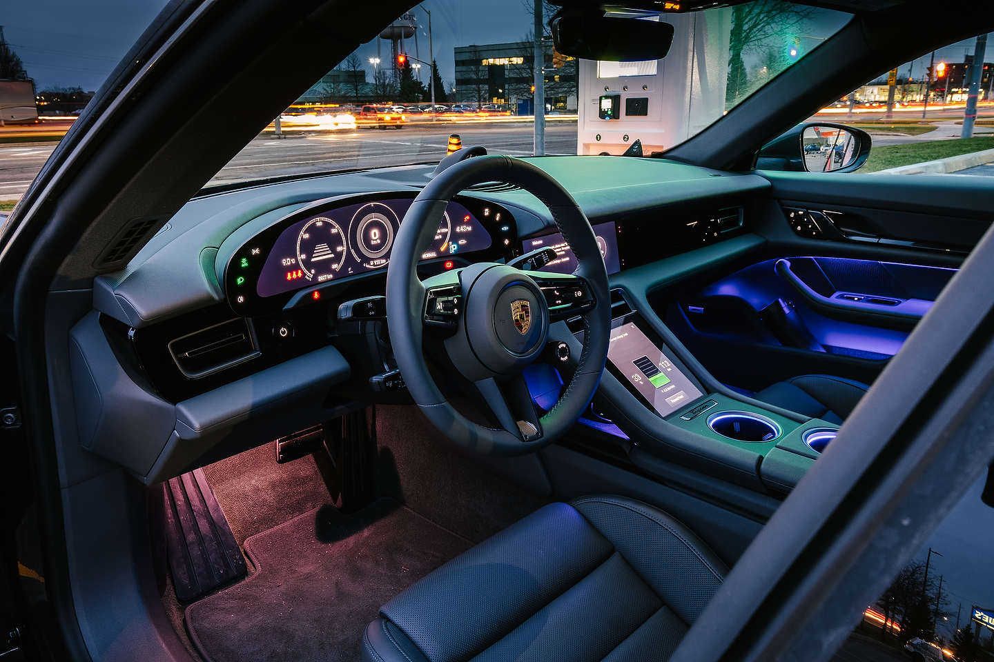 Et en tant que concurrente, la Taycan n’a essentiellement aucune concurrence, même dans la Tesla Model S. Physiquement parlant, la voiture est d’une simplicité trompeuse, mais d’une complexité incroyable. Mon modèle d’essai gris volcan avait presque l’air sobre, presque plat, avec les jantes Taycan S Aero de 19 pouces. Mais, malgré cette configuration, la voiture reste extrêmement spéciale.