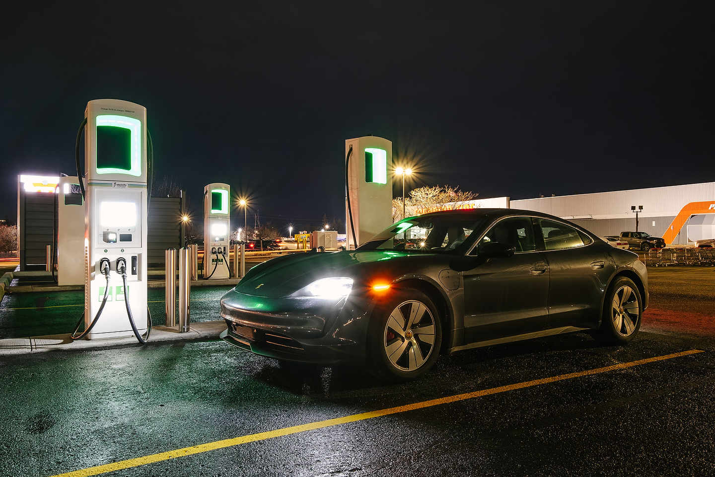 Avec une charge de 98 % et une portée indiquée de 334 km, je suis parti. Mon plan prévoyait un premier arrêt à environ 225 km du trajet pour recharger à un chargeur de 350 kW avant d’arriver à destination. Comme un blizzard s’est installé sur la route, le voyage ne s’est pas déroulé comme prévu. Malheureusement, la station de 350 kW et la Taycan n’ont pas pu se connecter plus que quelques minutes, alors j’ai opté pour un chargeur de 150 kW. Le temps restant étant limité, je me suis débranché avec une charge de 60 % et je me suis dirigé vers ma destination finale.