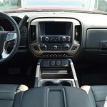 Le design de la planche de bord est très massif, on récupère l’idée du coup de pelle dans le front avec une imposante console qui regroupe toutes les principales commandes et les accessoires de confort. Le tableau est recouvert de cuir avec de belles surpiqures qui rehaussent l’image du produit. Évidemment, à 87 000 $ on arrive avec les sièges en peau chauffante et climatisée, la navigation et le programme MyLink qui nous connecte avec notre monde extérieur. On peut facilement transformer cette cabine en bureau alors que les quatre roues sont dans huit pouces de boue.
