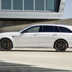 Reprenant complètement les dogmes habituels de la gamme AMG, cette familiale E63S arrive avec un style pour le moins ravageur. À l’instar de son penchant en berline, on intègre un bouclier avant très agressif avec des accents noirs lustrés qui donne le ton. On poursuit avec un ensemble de jupes qui cerclent le véhicule jusqu’à l’arrière. Les bas de caisse culminent avec un parechoc arrière en noir où deux sorties d’échappement double prennent place. Évidemment, des jantes propres à AMG, aussi en noir, sont livrables avec une taille pouvant atteindre les 20 pouces.