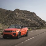 RR_Evoque_Convertible_ext_dynamic (1)Ce qui donne au Evoque Cabriolet son caractère spécial, c’est son toit de toile rétractable électriquement à l’aide d’un petit moteur. La manœuvre s’exécute du bout du doigt en moins de 18 secondes, et peut être réalisé même en roulant à une vitesse pouvant atteindre 50 kilomètres à l’heure.