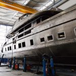 Développé par les studios de design de Porsche Design et construit en collaboration avec Dynamiq, on découvre maintenant le Porsche Design Dynamiq GTT 115 qui sera introduit en première au Monaco Yacht Show, l’un des plus prestigieux salons maritimes au monde. Fait important, considérant la facture, sans trop d’options, de plus de 16 millions de dollars américains, seulement sept unités seront assemblées afin de maintenir une haute exclusivité pour le yacht de 115 pieds de long.