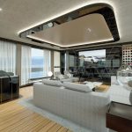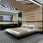 Construit presque entièrement d’aluminium, les designers ont pu s’amuser allègrement au niveau de la forme. On obtient une ligne spectaculaire qui selon Porsche s’inspire des mouvements de l’eau. Sur le plan de l’aménagement, les possibilités sont tout simplement illimitées. On offre entre autres, des meubles en teck agencés aux différents ponds pour la modique somme de 400 000 $ ou encore des accessoires pour la cabine par Minotti pour 300 000$. De plus, étant dessiné par Porsche, on peut opter pour l’ensemble fibre de carbone sport avec des accents décoratifs un peu partout sur le navire en plus d’un vélo stationnaire. Le cout de cette option? 278 000 $.