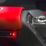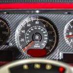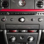 La cabine laisse place à une mer de fibre de carbone partout sur la planche en remplacement des fines boiseries habituelles. On en retrouve dans chaque coin et même presque un peu trop. On apporte des accents de cuir rouge pour cercler la partie supérieure du tableau de bord, dans les portières et à l’appuie-bras central.